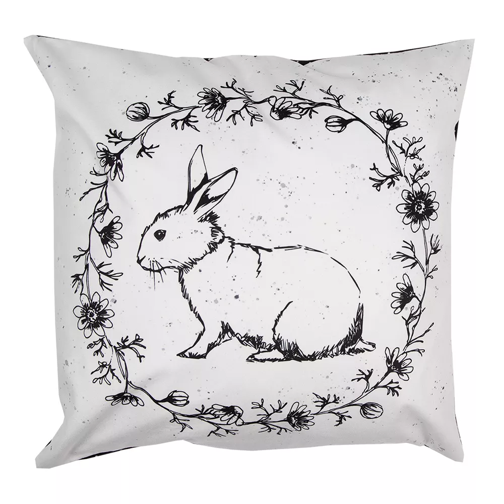 Krásný bílý povlak na dekorační polštář s motivem králíka v rustikálním stylu. Dekorační polštář vždy dodá vašemu domovu útulnou a hřejivou atmosféru. Skvěle se hodí na Velikonoce. Lze kombinovat s dalšími povlaky na polštářky z této řady.