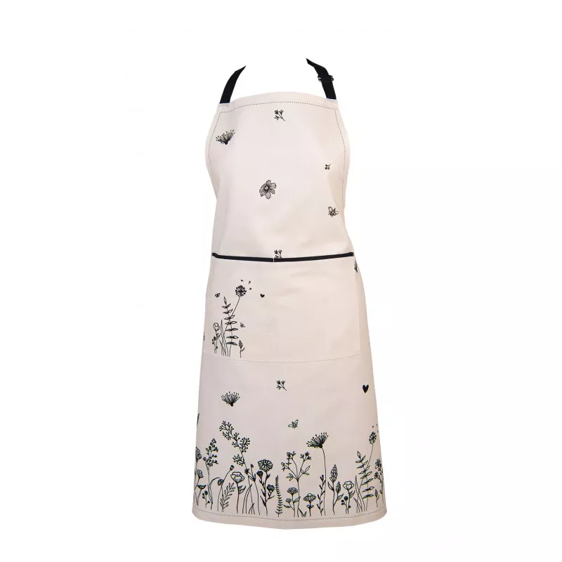 Bavlněná zástěra z textilní kolekce FLORA AND FAUNA. Krásná textilní série, která se bude cítit jako doma v každém moderním interiéru. Užijte si flóru a faunu s jejími květinami a včelami a krásné okamžiky u stolu a kolem něj.