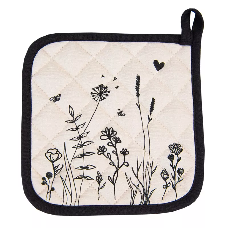 Bavlněná podložka nebo chňapka z textilní kolekce FLORA AND FAUNA. Krásná textilní série, která se bude cítit jako doma v každém moderním interiéru. Užijte si flóru a faunu s jejími květinami a včelami a krásné okamžiky u stolu a kolem něj.