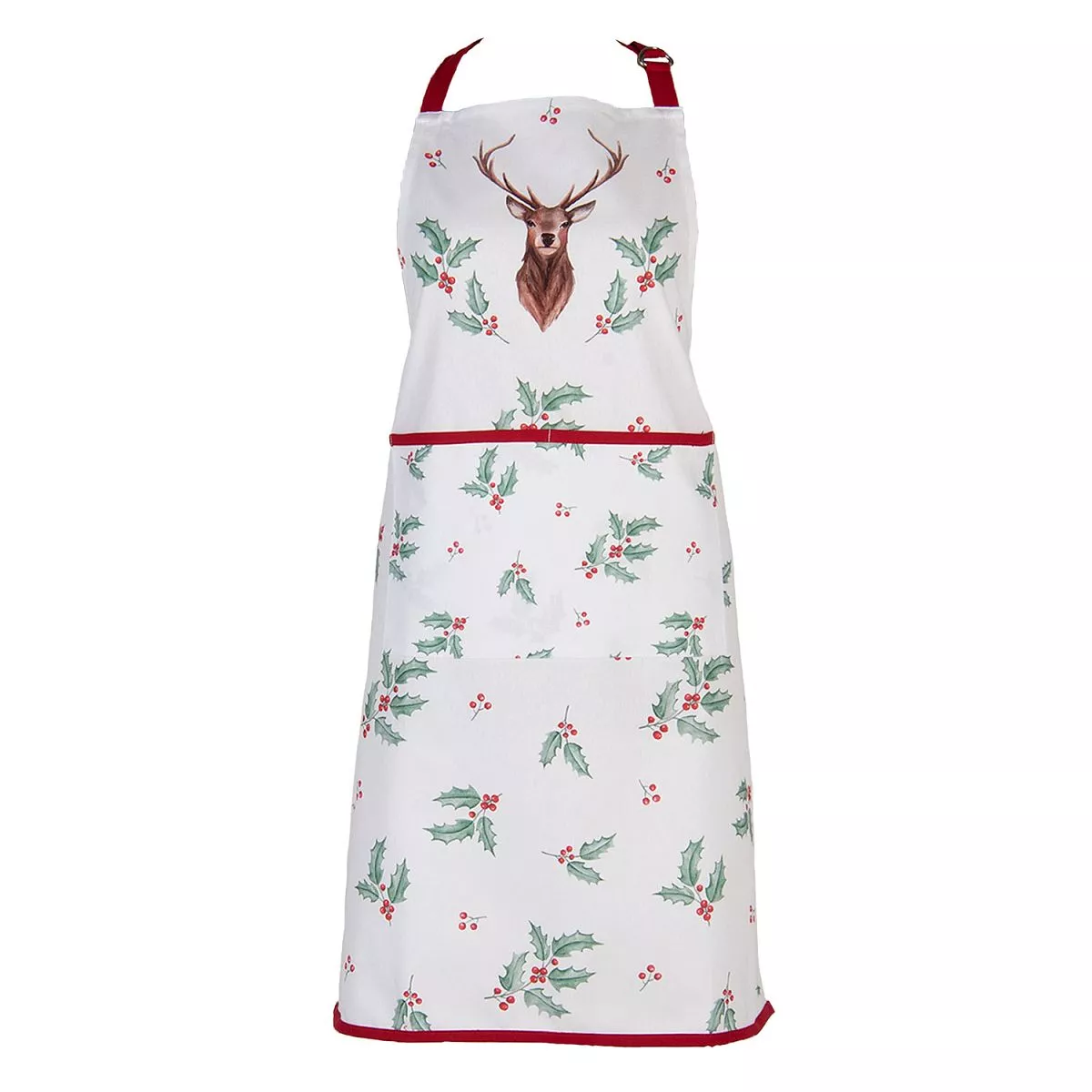 Bavlněná zástěra z textilní kolekce HOLLY CHRISTMAS. Tohle jsou tradiční Vánoce v té nejlepší podobě! Nádherně ilustrovaný sob zaujímá v této textilní sérii ústřední místo a je krásně orámován ozdobnou cesmínou s červenými bobulemi. Když si představíme Vánoce, vybaví se nám sytě zelená a jasně červená barva. V tomto motivu se tyto barvy dostávají do popředí a tvoří textilní sérii, která nabízí všechny ingredience pro atraktivně prostřený stůl.