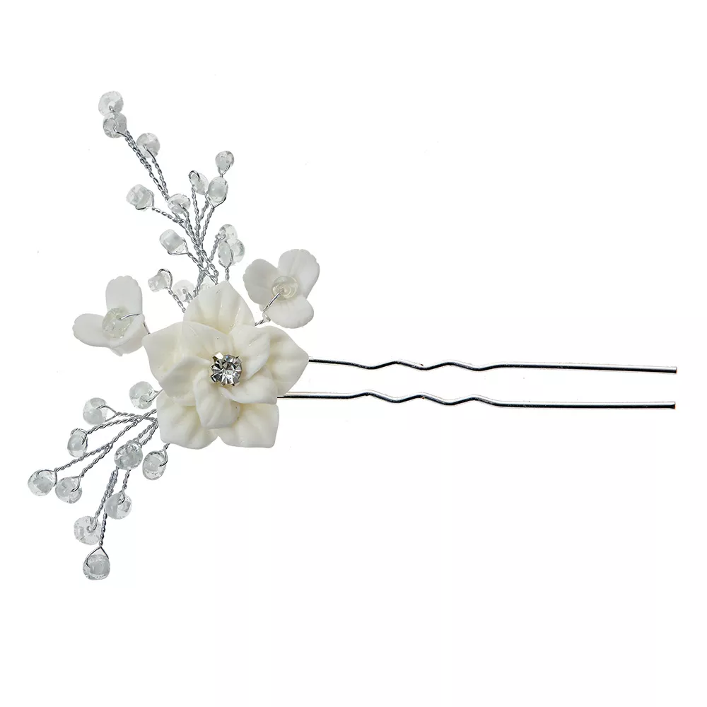 Krásná sponka do vlasů ve stříbrné barvě s květinami, která ve vašem účesu upoutá pozornost. Vytváří krásnou kompozici a vypadá nádherně v každém účesu. Ideální pro svatební účesy.