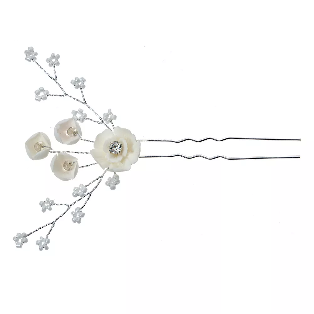 Krásná sponka do vlasů ve stříbrné barvě s květinami, která ve vašem účesu upoutá pozornost. Vytváří krásnou kompozici a vypadá nádherně v každém účesu. Ideální pro svatební účesy.