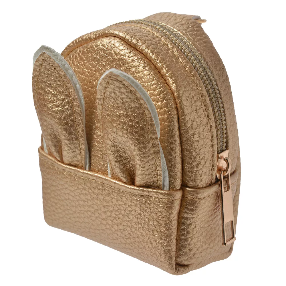 Přívěsek na klíče malá zlatá peněženka se zaječíma ušima.