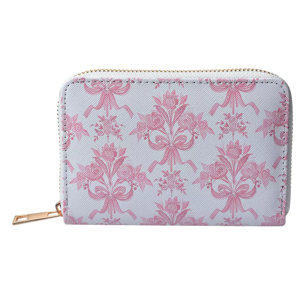 Pěkná peněženka se zapínáním na zip s motivem květin. Kompaktní a módní, s přihrádkami na bankovky, karty a mince. Funkční a elegantní, příjemný doplněk vašich každodenních potřeb.