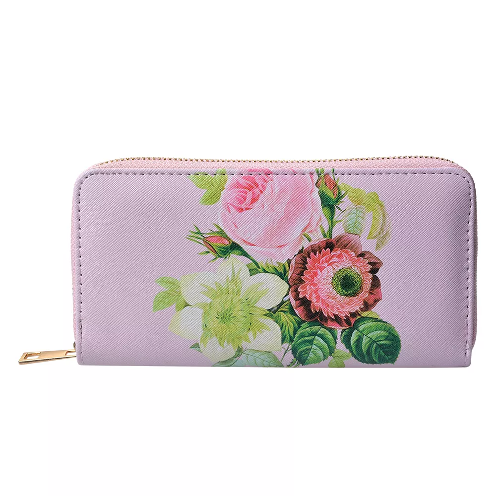 Pěkná peněženka se zapínáním na zip s motivem květin. Kompaktní a módní, s přihrádkami na bankovky, karty a mince. Funkční a elegantní, příjemný doplněk vašich každodenních potřeb.