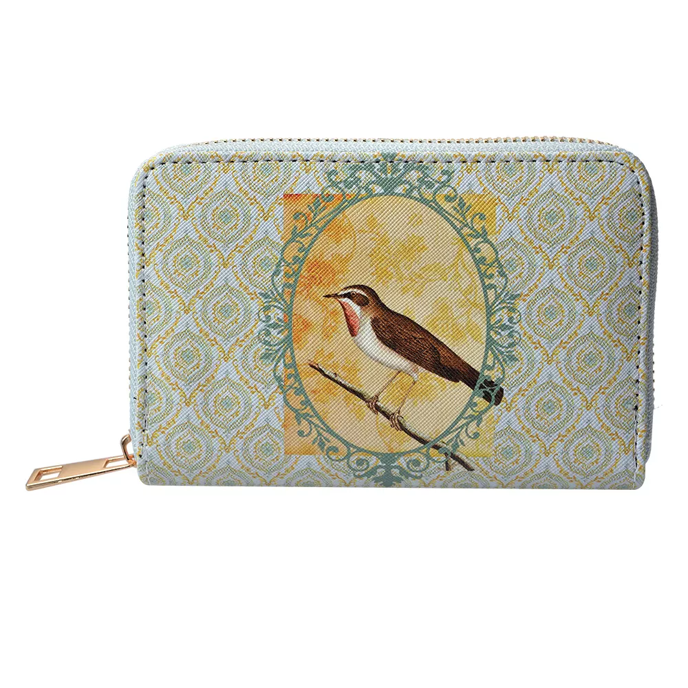 Pěkná peněženka se zapínáním na zip s motivem ptáčka. Kompaktní a módní, s přihrádkami na bankovky, karty a mince. Funkční a elegantní, příjemný doplněk vašich každodenních potřeb.