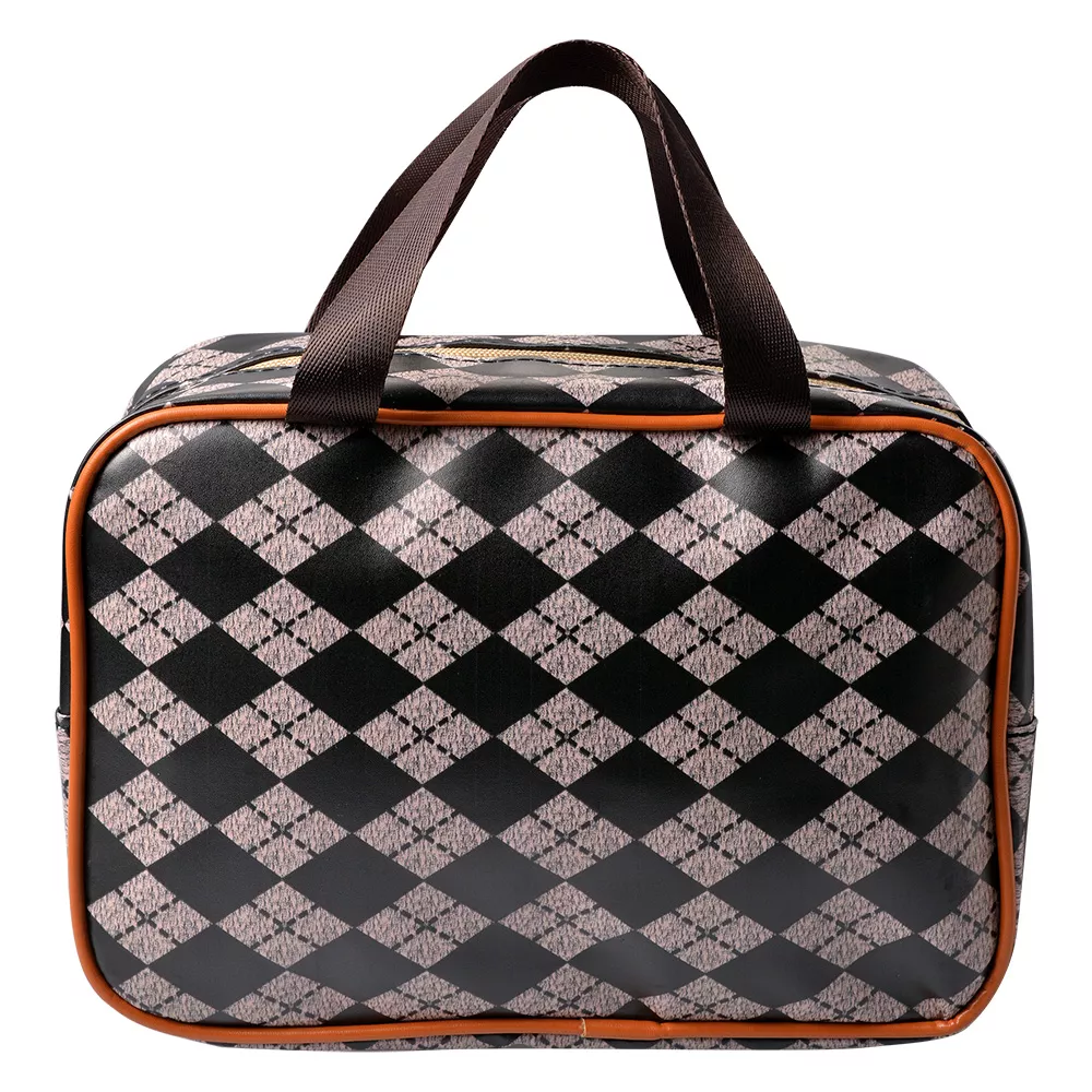 Elegantní černo-hnědá taška s dostatečným prostorem pro nezbytné toaletní potřeby, navržená s důrazem na detail, nabízí funkčnost a odolnost. Snadno se čistí.