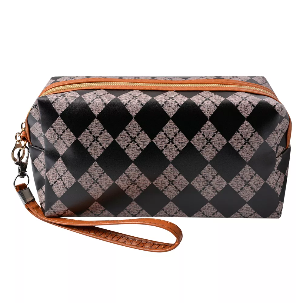 Elegantní černo-hnědá taštička s dostatečným prostorem pro nezbytné toaletní potřeby, navržená s důrazem na detail, nabízí funkčnost a odolnost. Snadno se čistí.