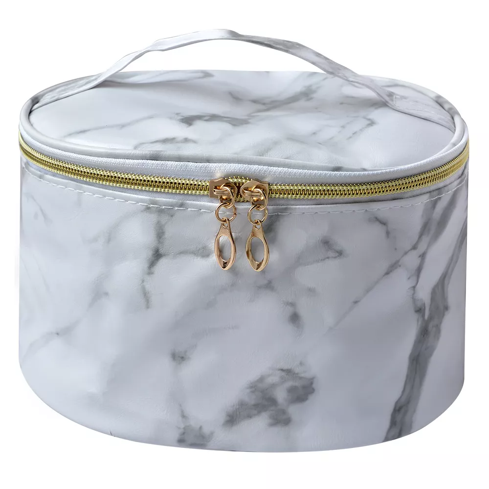 Elegantní bílo-šedá taška s velkým prostorem na nezbytné toaletní potřeby, navržená s důrazem na detail, nabízí funkčnost a odolnost. Snadno se čistí.