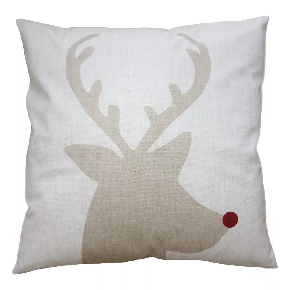 Povlak na dekorační polštář z polyesteru, béžový, s motivem jelena, z textilní série NATURAL WINTER VIBES. Tato kolekce bytového textilu, zalitá klidnými béžovými tóny, zahrnuje přirozenou krásu zimy. Díky různým motivům, včetně hravých jelenů, majestátních borovic a inspirativních textů, tato série oživí kouzlo Vánoc v každém koutě vašeho domova.