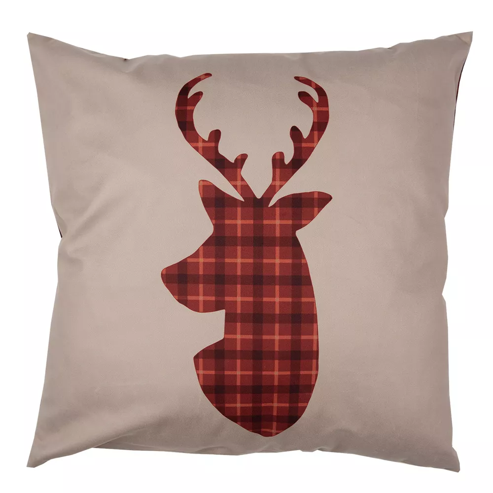 Polyesterový povlak na polštář ze série TRADITIONAL X-MAS. Tato kolekce bytového textilu v jemných béžových tónech vyzařuje hřejivou a nostalgickou atmosféru. Vrcholem série jsou ilustrace jelenů a vánočních stromků, velkoryse vyplněné červeným kostkovaným vzorem. Tyto okouzlující vzory vyvolávají vzpomínky na útulné svátky a rodinná setkání.